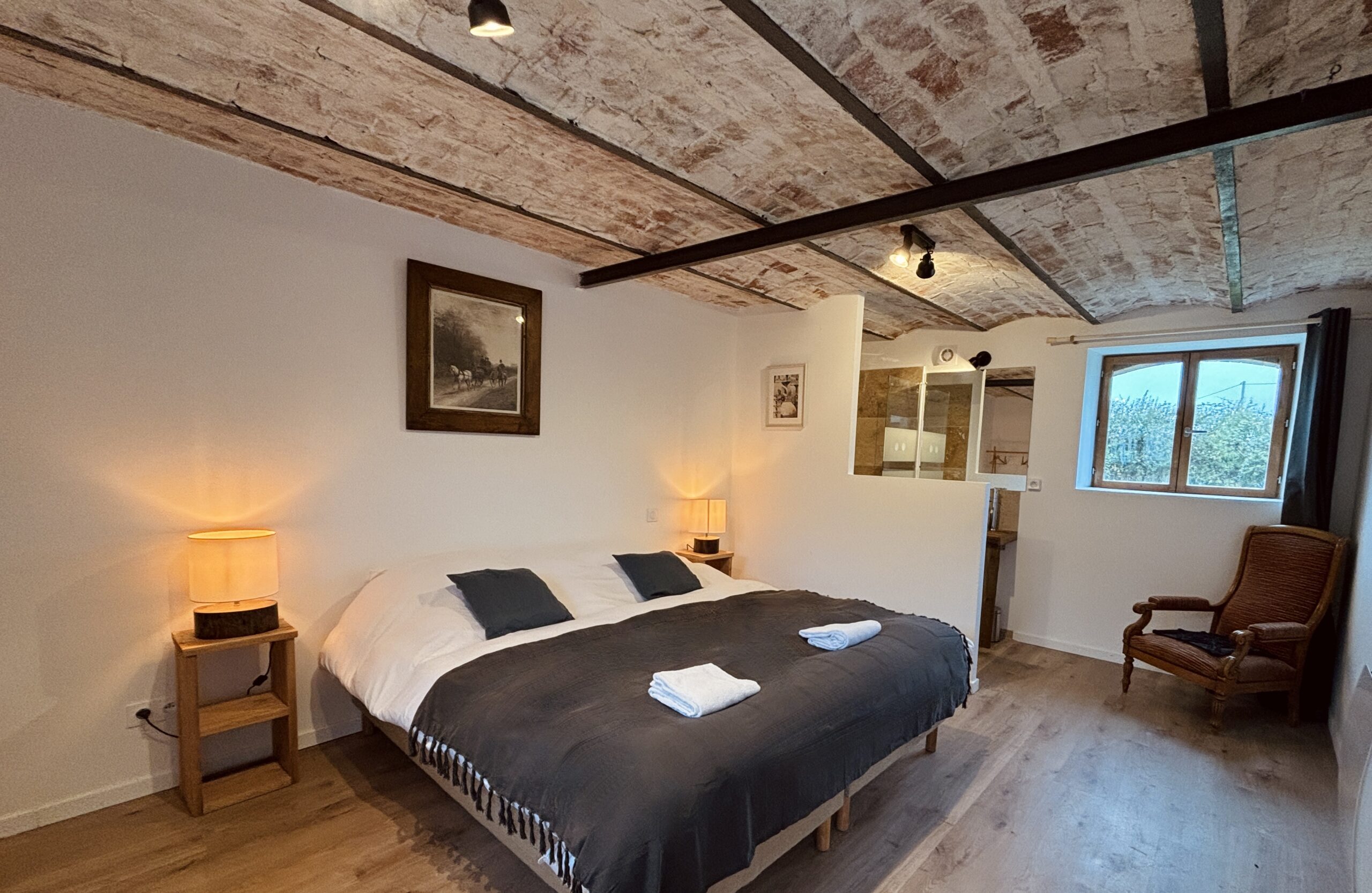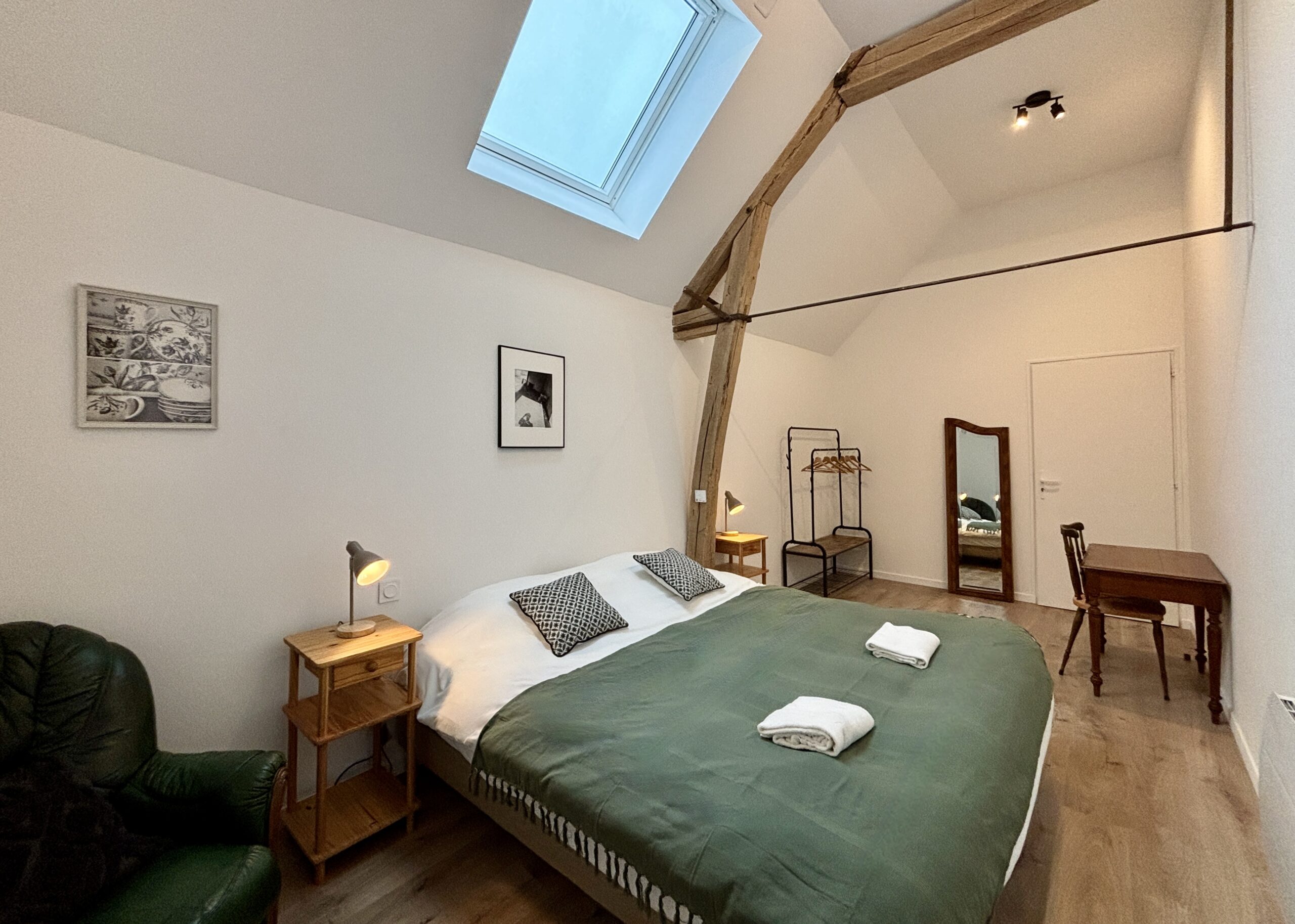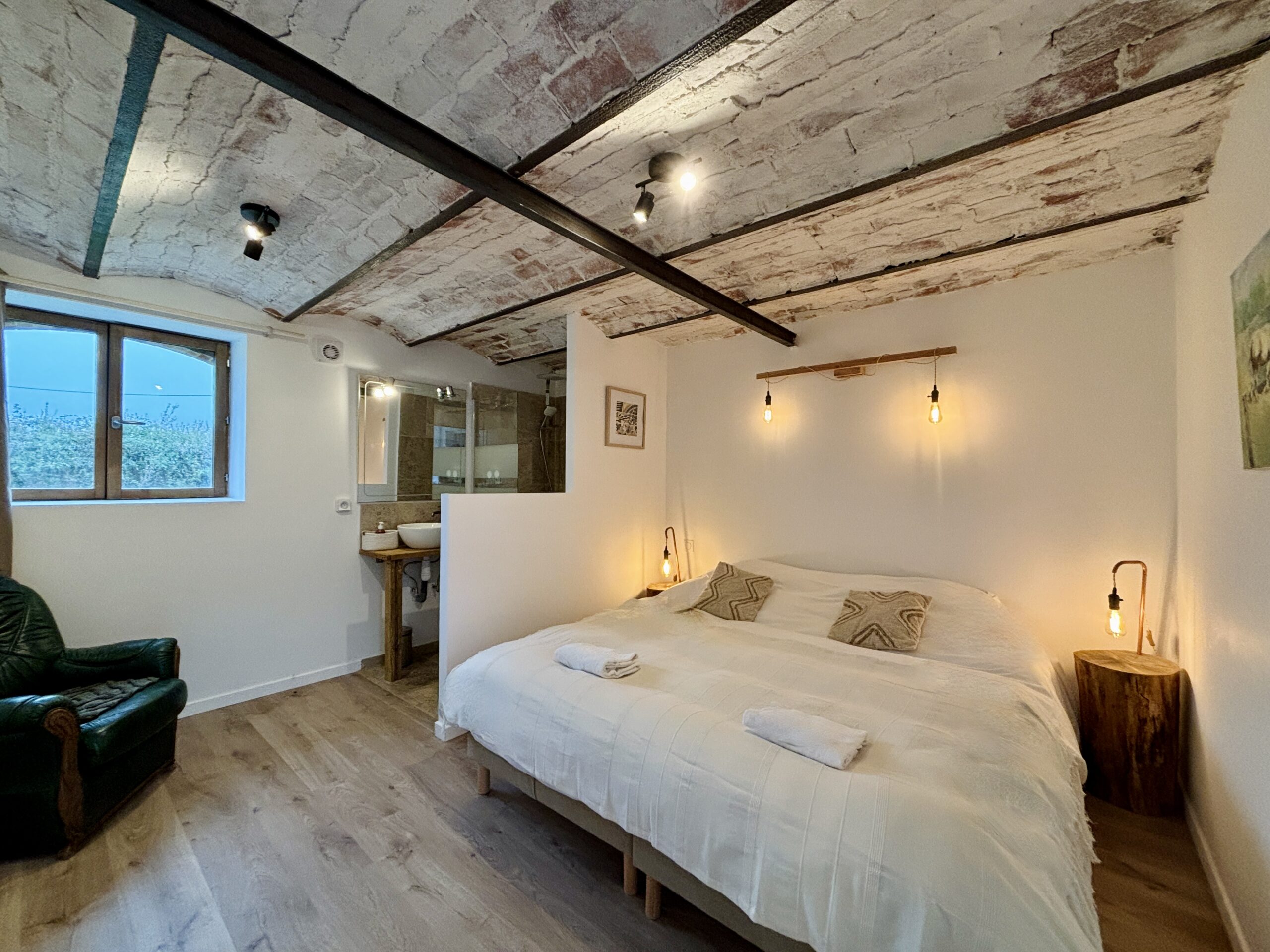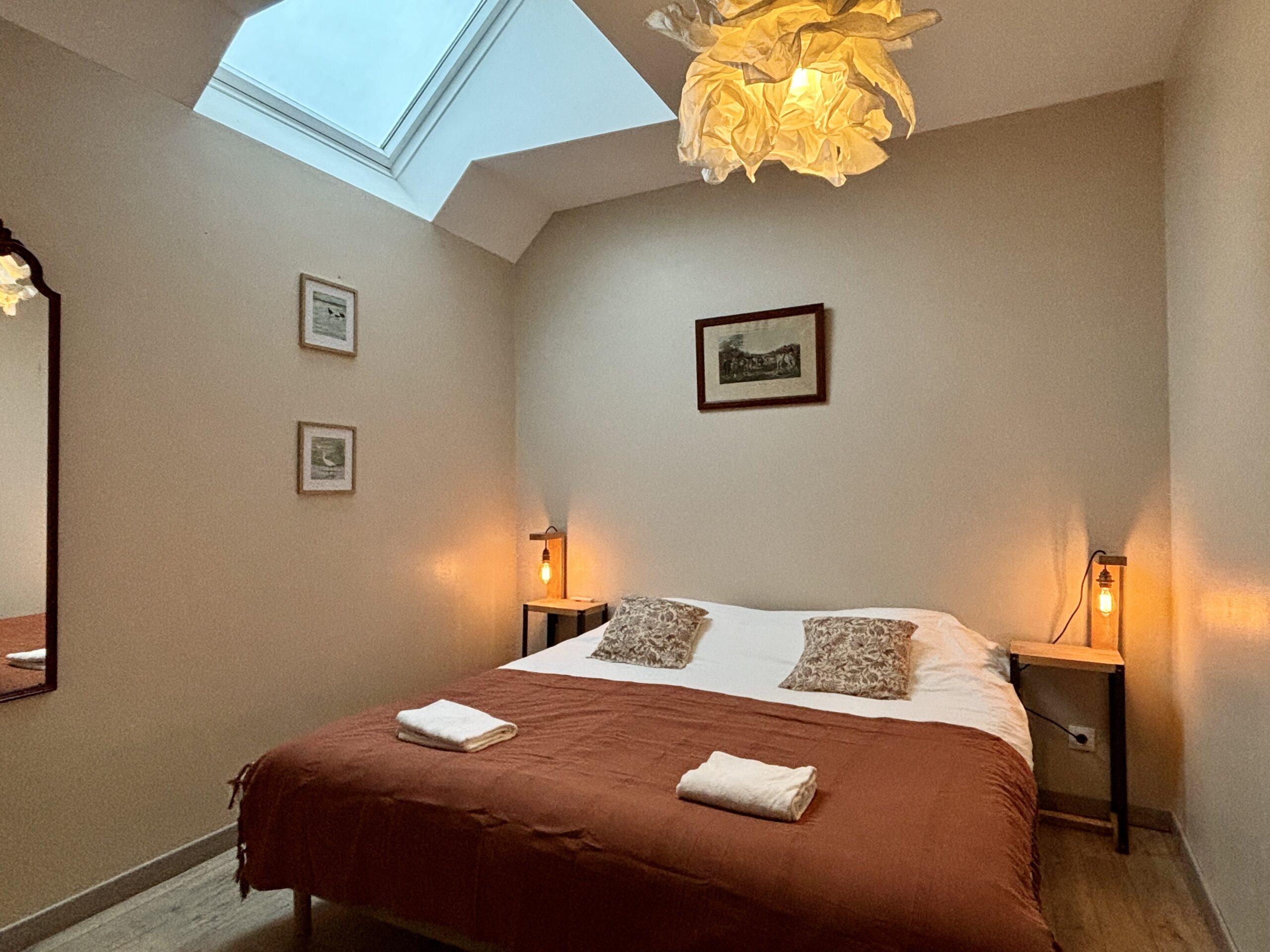 Chaque chambre est équipée d’une literie française haut de gamme Bonnuit, pour un confort digne de l’hôtellerie. La majorité des lits sont modulables, permettant de passer facilement d’un grand lit double à deux lits séparés selon vos besoins. Cette souplesse est idéale pour accueillir aussi bien des familles que des groupes d’amis ou de collègues.